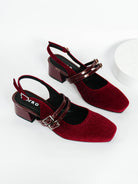 Baleta punta cuadrada rojo terciopelo