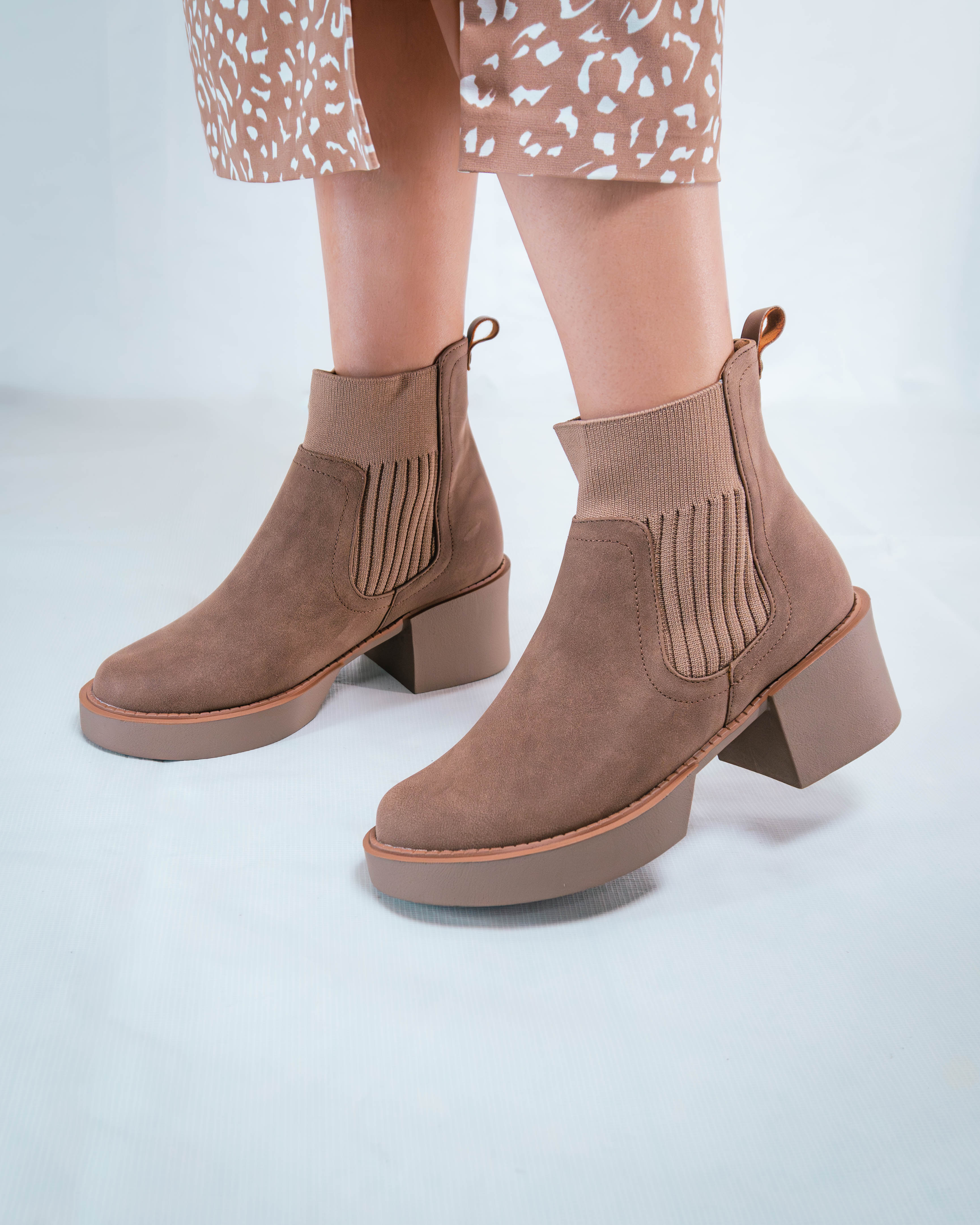 Botin punta redonde color arena + elastico