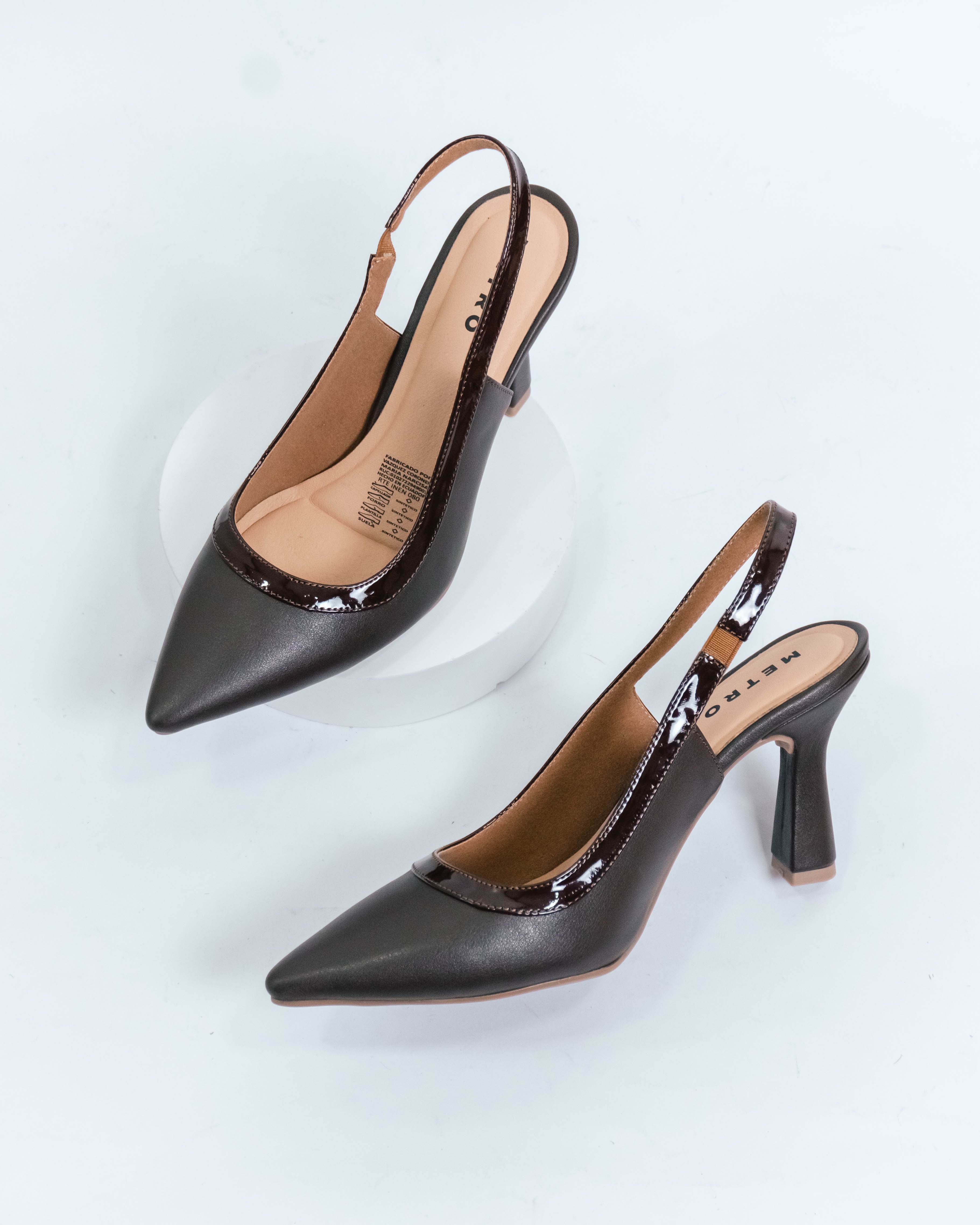 Stiletto cafe mate destalonado con detalle de charol en el contorno
